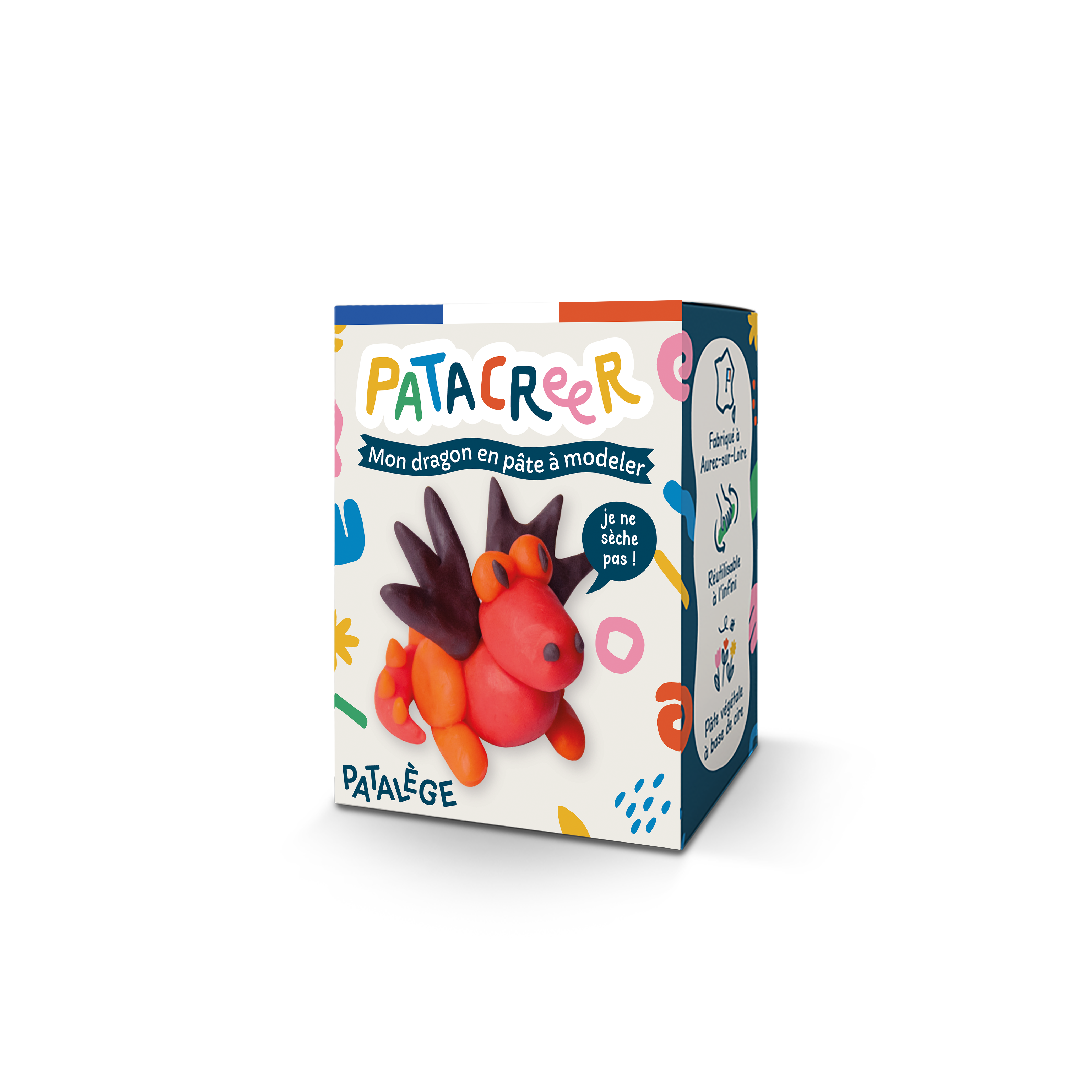 PATALÈGE est une pâte à jouer végétale à base de cire qui garde sa texture souple au fil des utilisations. Elle ne sèche pas!