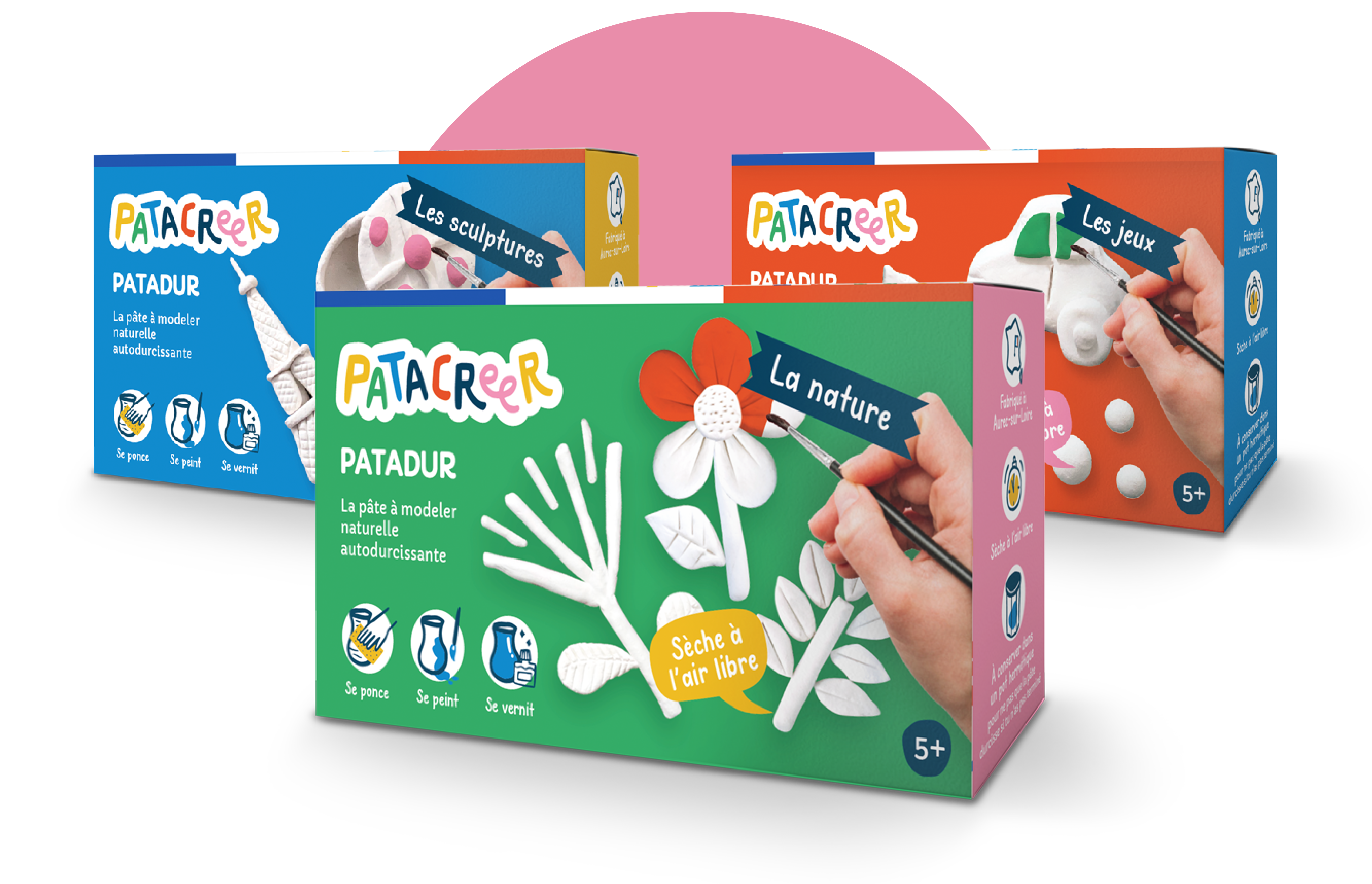 Patadur est une pâte minérale écologique qui durcit au contact de l’air. Bijoux, animaux, billes, laissez libre cours à votre imagination !