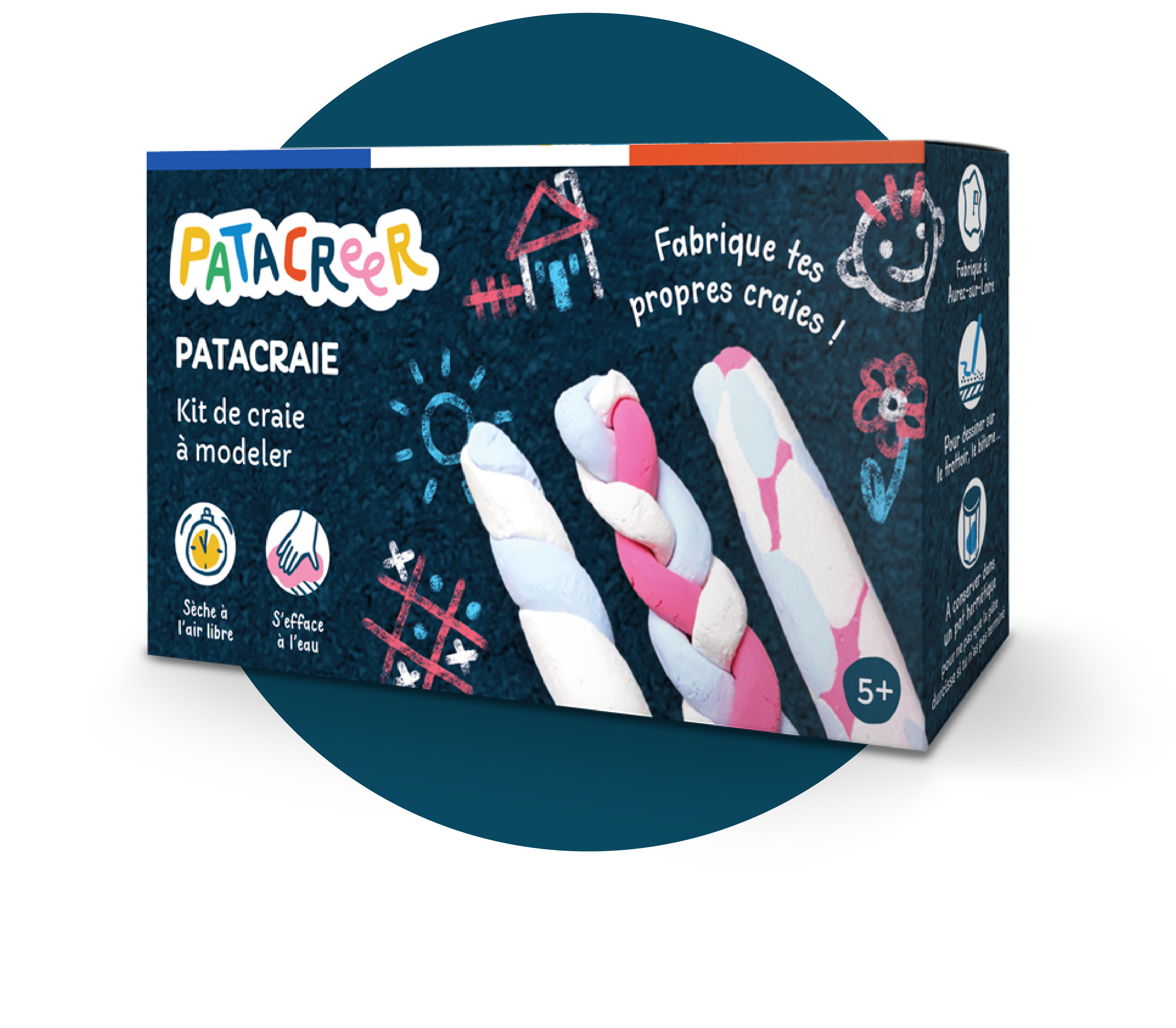 Patacraie est une pâte à modeler qui, une fois durcie à l’air libre, devient ...une CRAIE ! Sur le bitume, les murs ou les tableaux, elle permettra l’expressivité des petits comme des grands et ceci sans contrainte puisque les «œuvres» s’effaceront à l’eau !