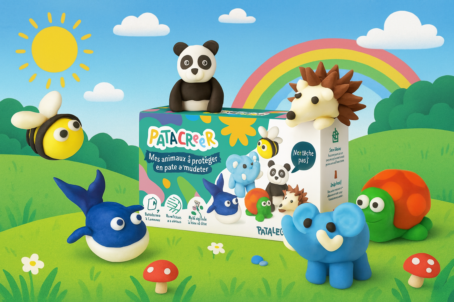 Kit à fabriquer Mes 6 animaux à protéger en Pâte à Modeler / Abeille, Baleine, Tortue, Panda, Hérisson & Elephant